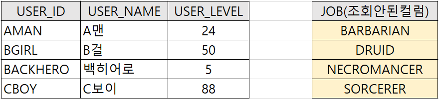위와 같이 USER_LEVEL을 기준으로 내림차순으로 조회된다.